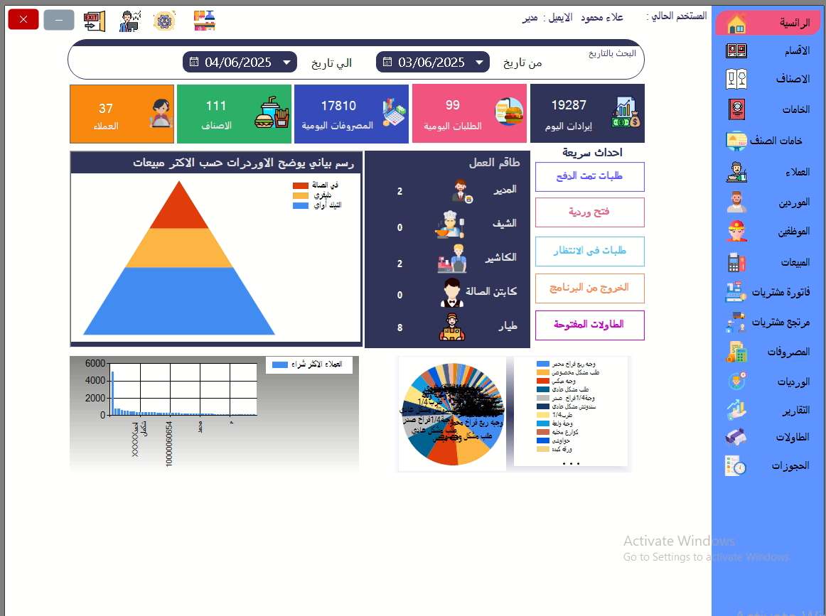 اقوى برنامج لإدارة المطاعم والكافيهات موجود قسم خاص الأجهزة لو محتاج وخدمة الواتس اب ورسال فتح وقفل الورديه للاونر وإرسال الطلب للعميل بكل التفاصيل وربط حسابات ببعضها بالمنتجات والخدمات متاح ربط الميزان بالبرنامج مباشرتا لمحلات الاسماك تقارير دقيقه مناطق للعملاء مع خدمة توصيل مختلفة شاشة بيع سهله ومرنة يدعم الورديات داش بورد ساهله لمعرف افضل عميل وافضل طيار وافضل منتج مبيع متاح بخصم 50%ومتاح ويب ابلكيشن وابلكيشن موبيل وديسك توب وكمان qr هديه للمنتجات مثل المتجر البرنامج مربوط مع هيئه الذكاء والدخل المرحلة الاولى ضريبه قيمة مضافه ضريبة التبغ ريسبس للمنتجات بكمياتها شاشة مطبخ برنترات لجميع الاقسام